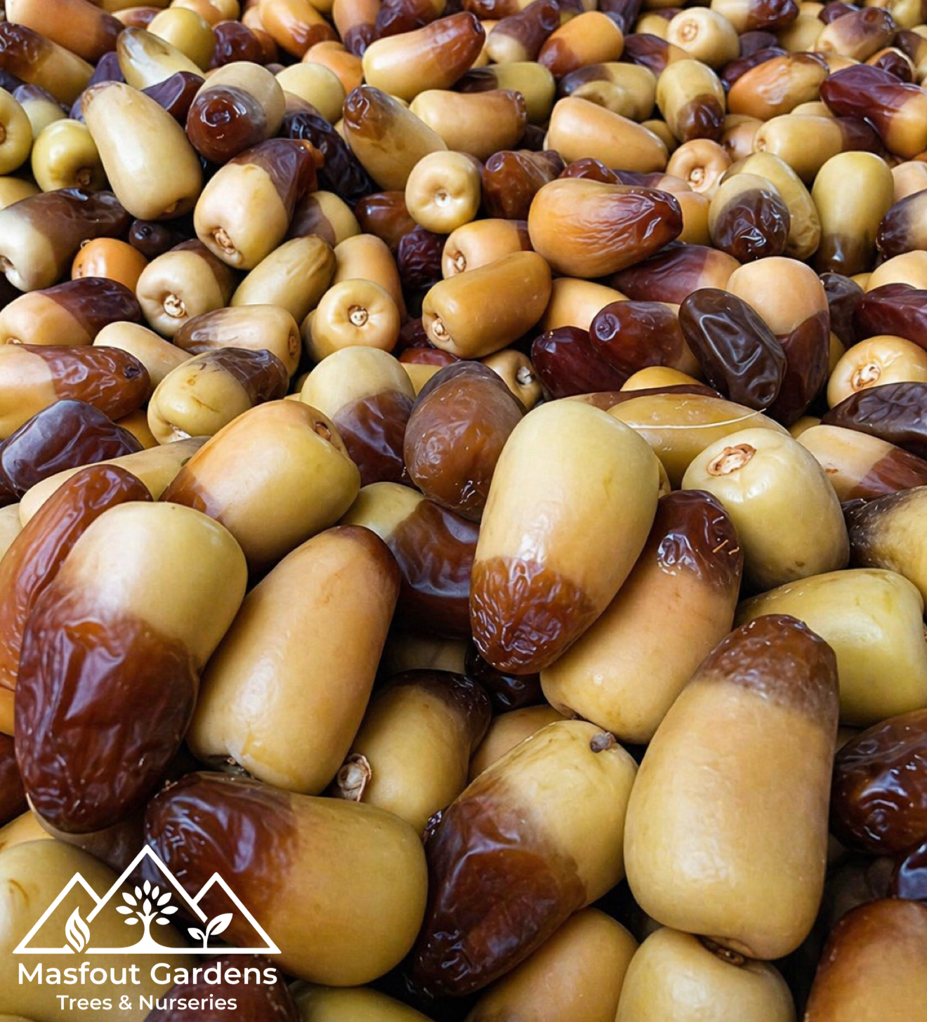 تتميّز بثمار متوسطة إلى كبيرة، ذات لون بني ذهبي عند الرطب، بقوام طري ونكهة غنية تميل إلى الحلاوة المتوازنة.