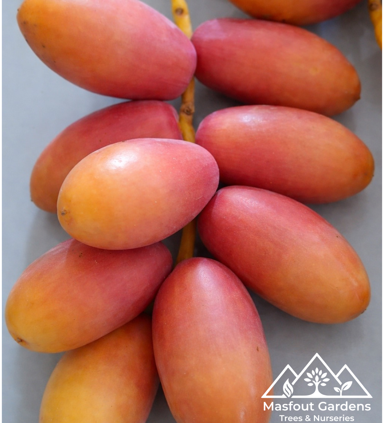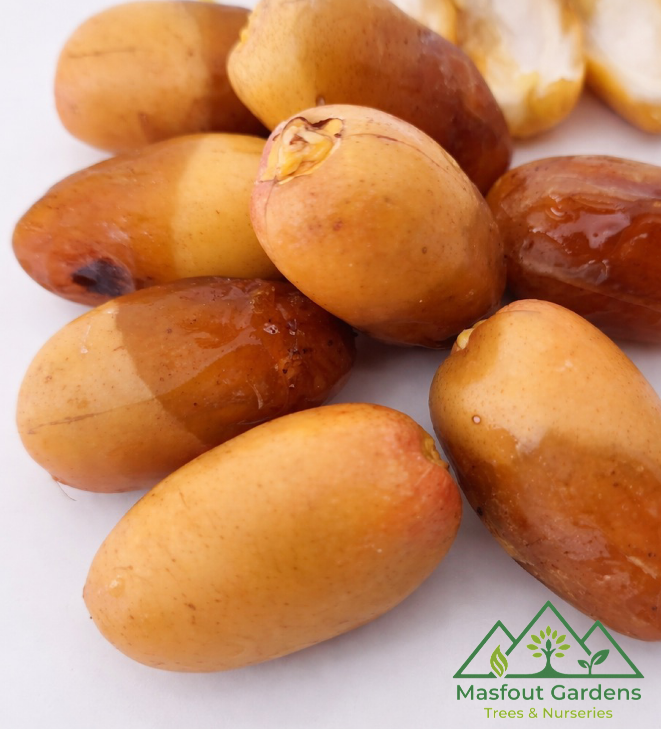 تتميّز ثمارها في مرحلة البسر بلون أصفر فاتح مائل للذهبي، ثم تتحول عند النضج إلى لون عسلي ذهبي شفاف يعطي لمعانًا مميزًا، وهو سبب تسميتها بـ أم الدهن.